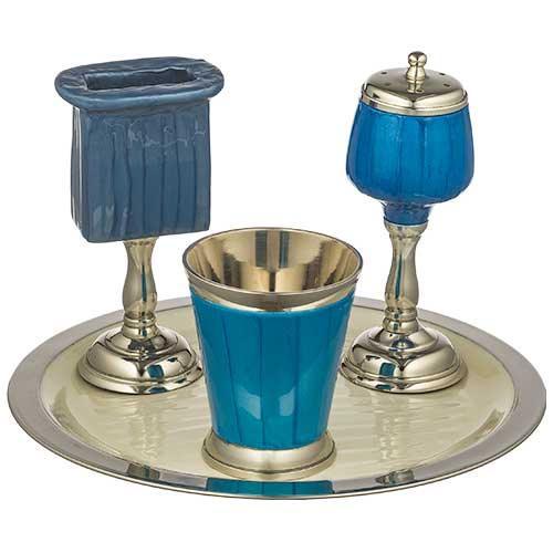 סט הבדלה מהודר מאלומיניום גווני כחול 14X23 ס"מ