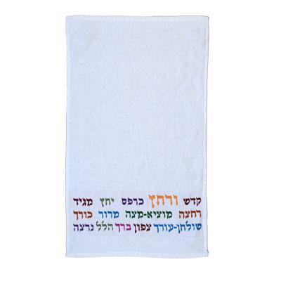 This soft hand towel features the order of the Seder night in beautiful colorful lettering.