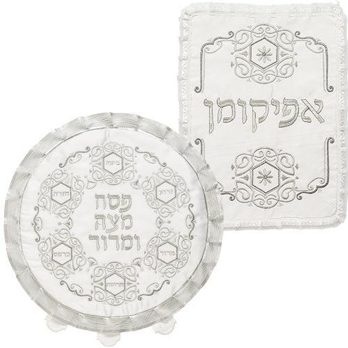 סט פסח ואפיקומן רקמת כסף משושים עם ערבסקות