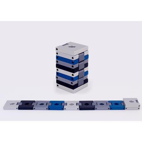 THE BELT TRAVELING MENORAH. This chain of connected square candleholders is fabricated in lightweight anodized aluminum. The pieces fold up into a smooth column that is easily packed for travel. And the connected links of the belt unfold into a streamlined, handsome Hanukah Menorah. A great gift idea for the professional man or woman who has everything. Comes in a small box.