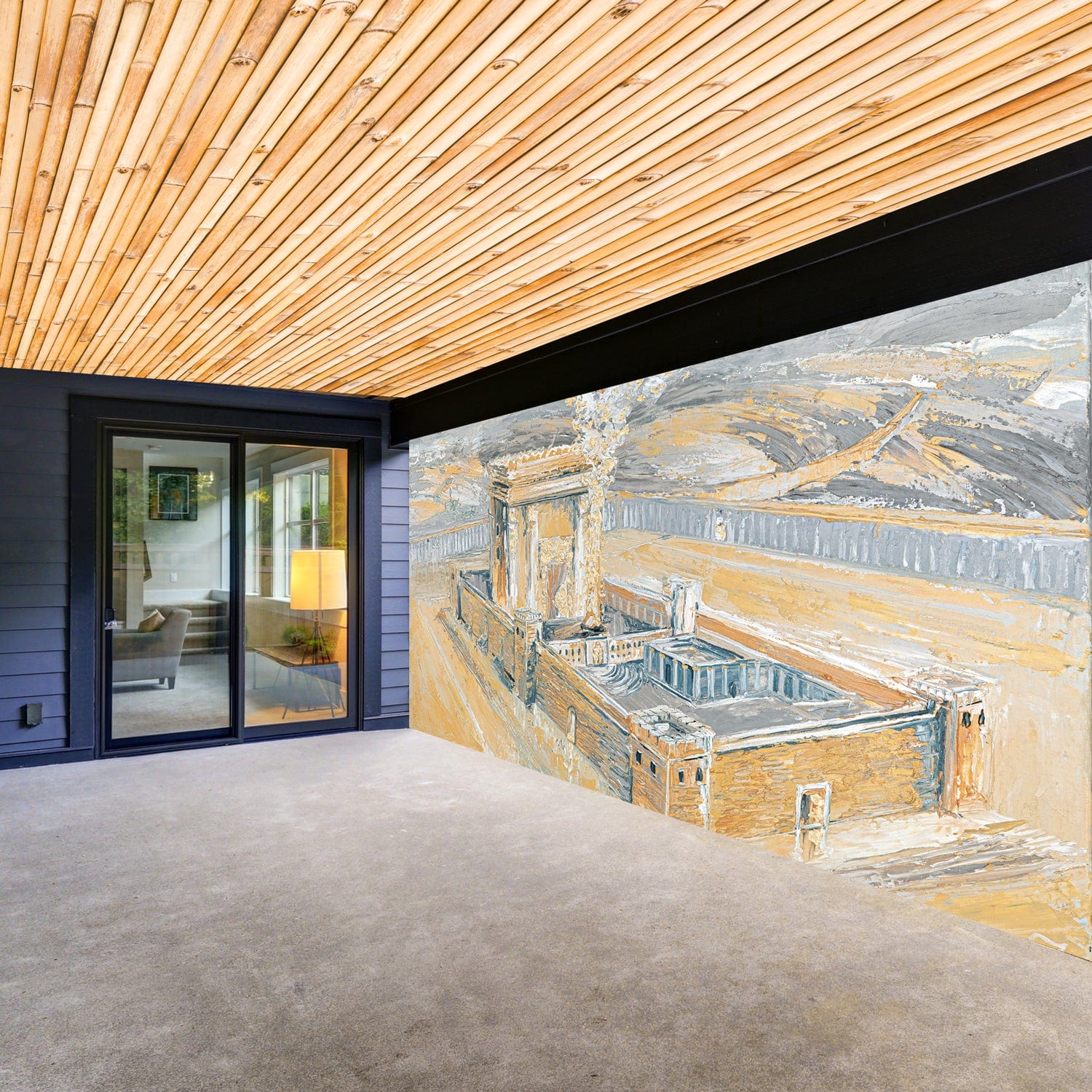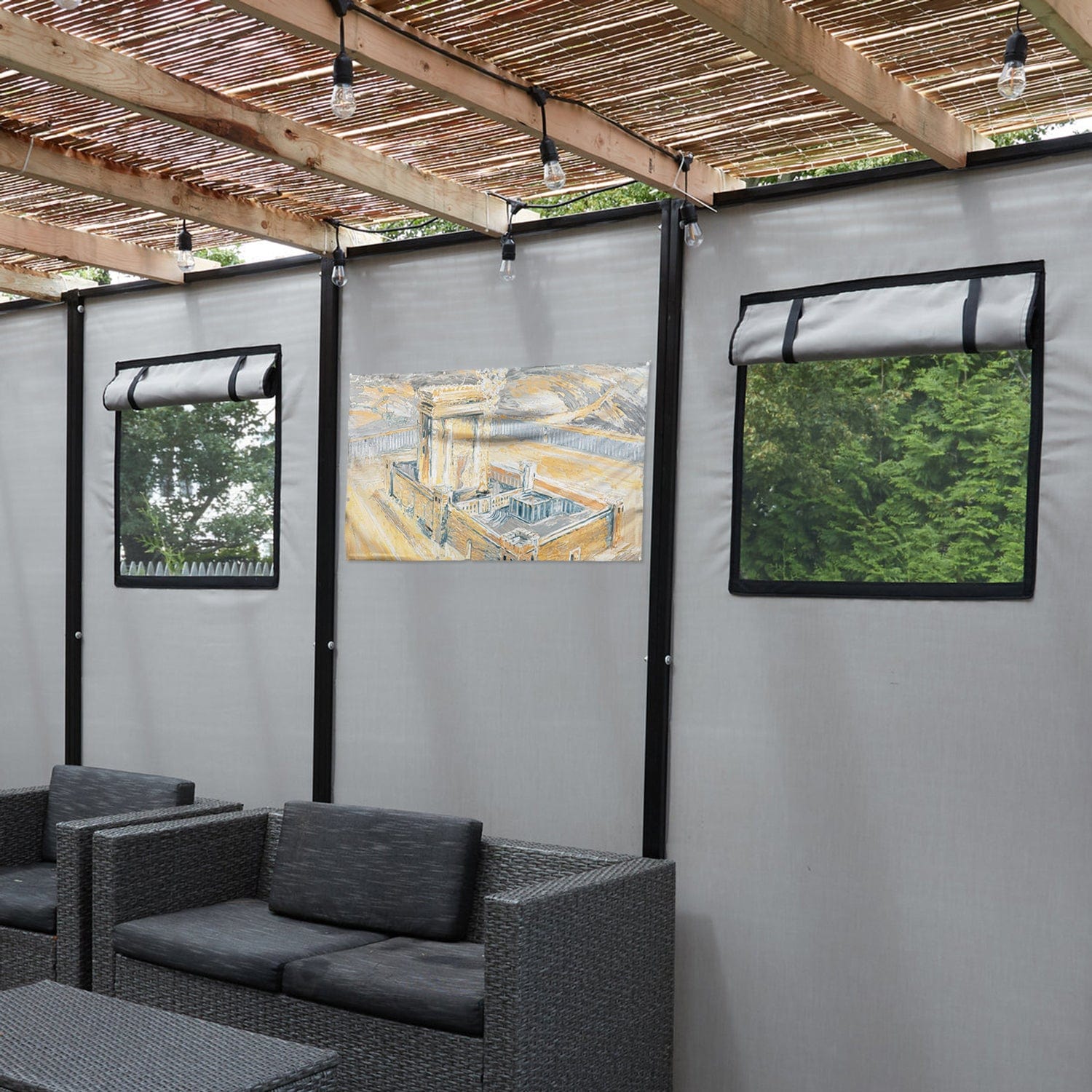 Bais Hamikdash of Gray & Gold Vinyl Sukkah Decoration