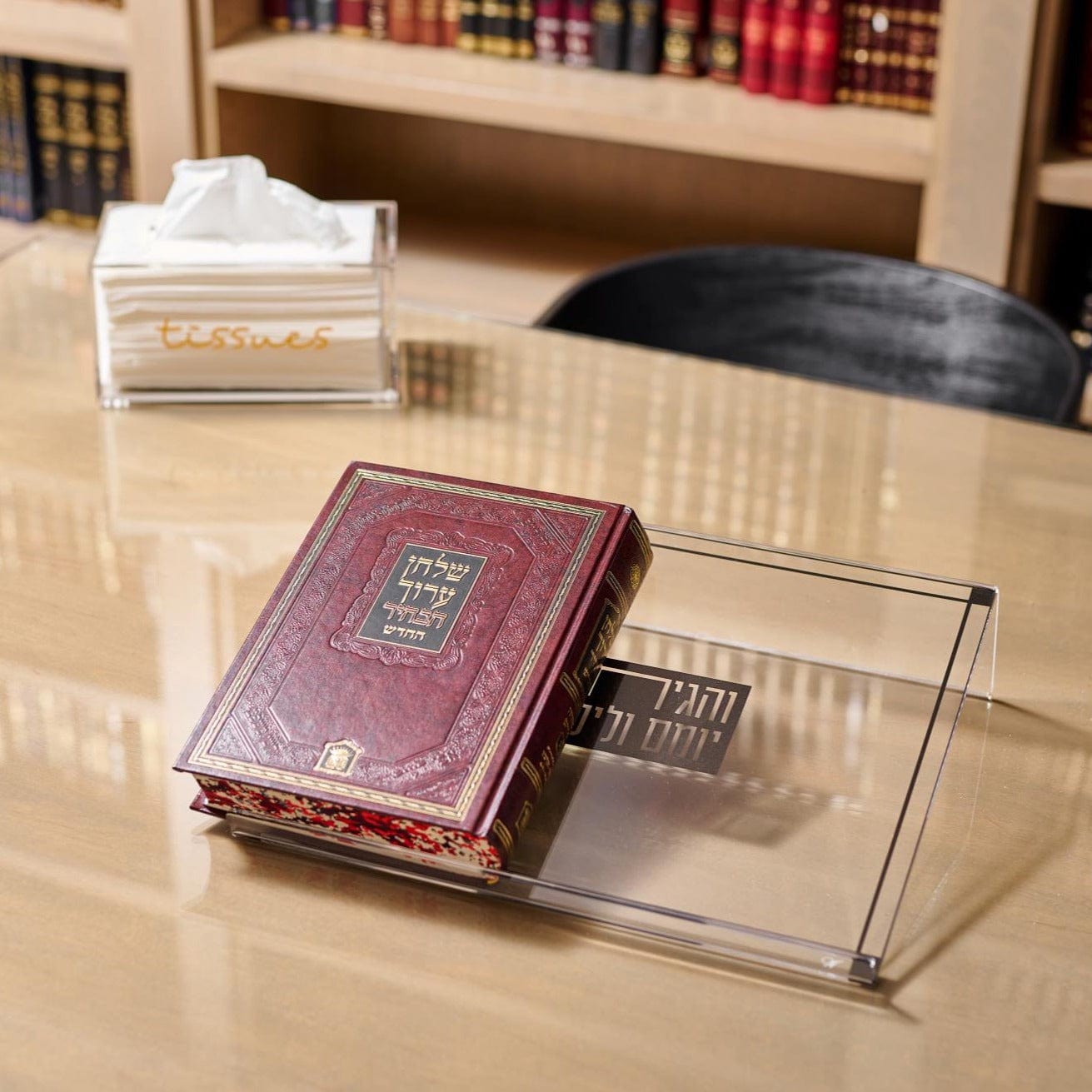 The perfect classic tabletop Lucite Shtender. Modern, clean vibes, perfect for at home learning. For that man. The Bar Mitzvah Bochur. Or an Upsherin Gift. Perfect for just about every boy!