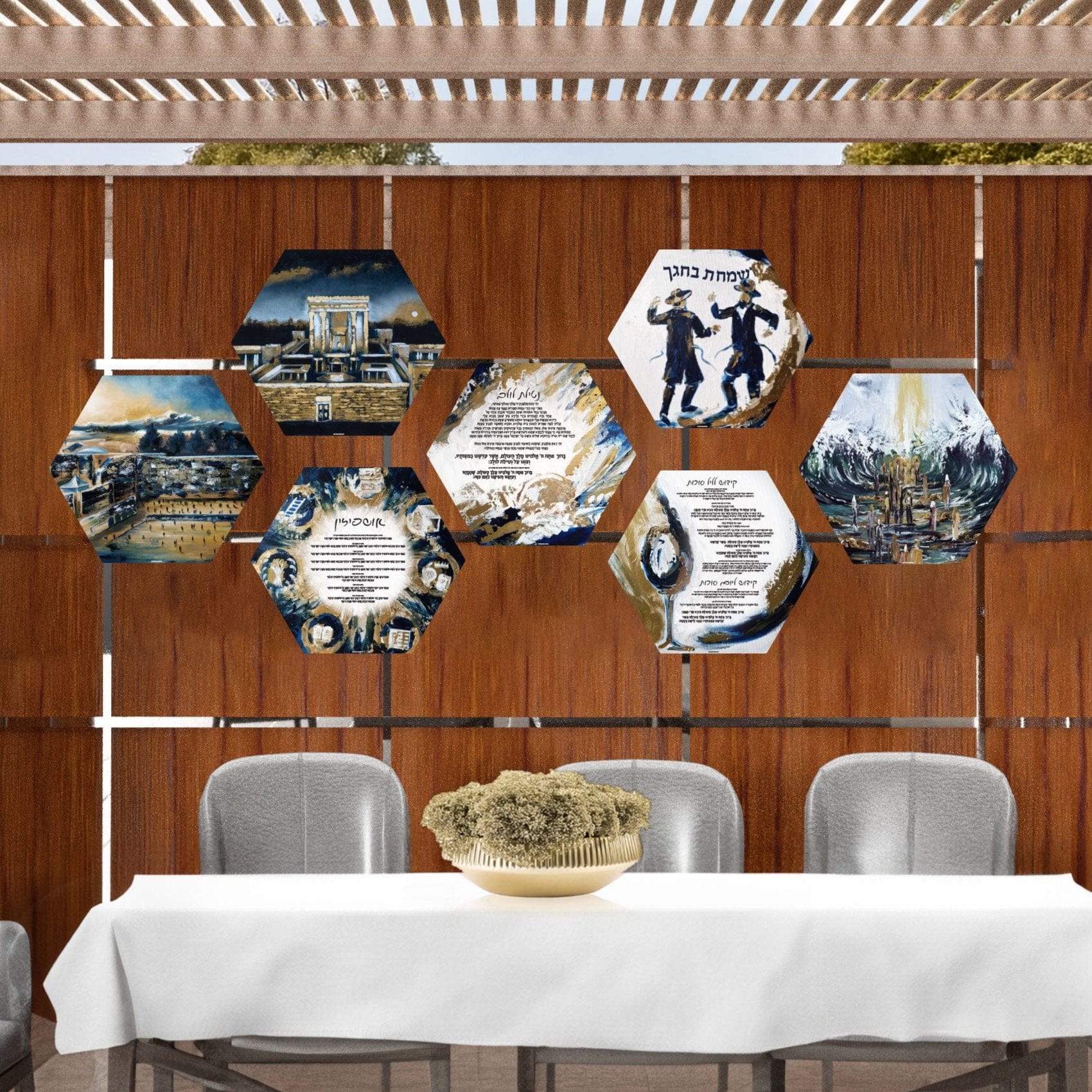 These beautiful exquisite Painted Sukkah Decorations are printed on crystal clear lucite with metallic gold addition for an almost fully original feel. This will take your Sukkah to new levels!
