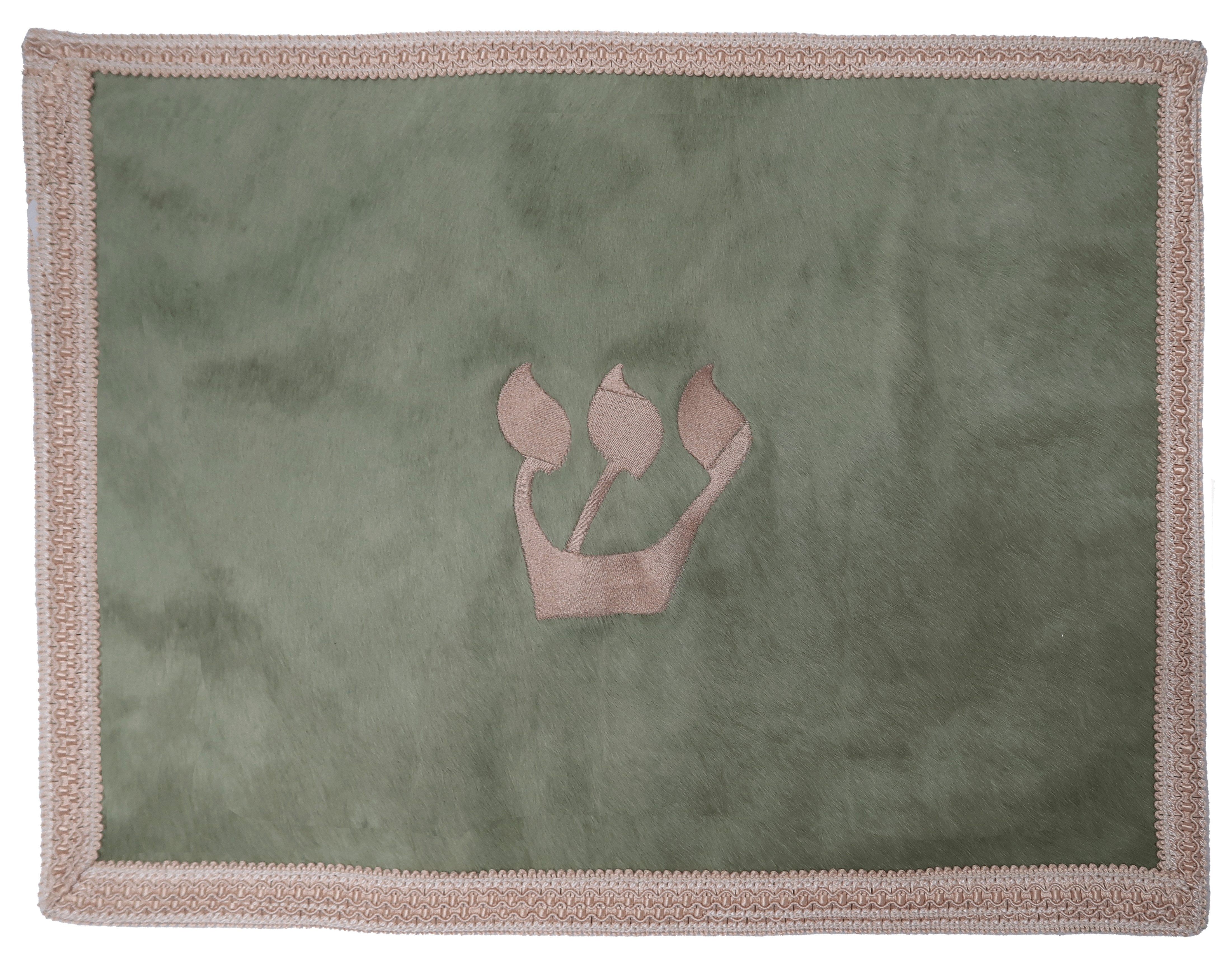 Green hair-on challah cover with large embroidered letter
