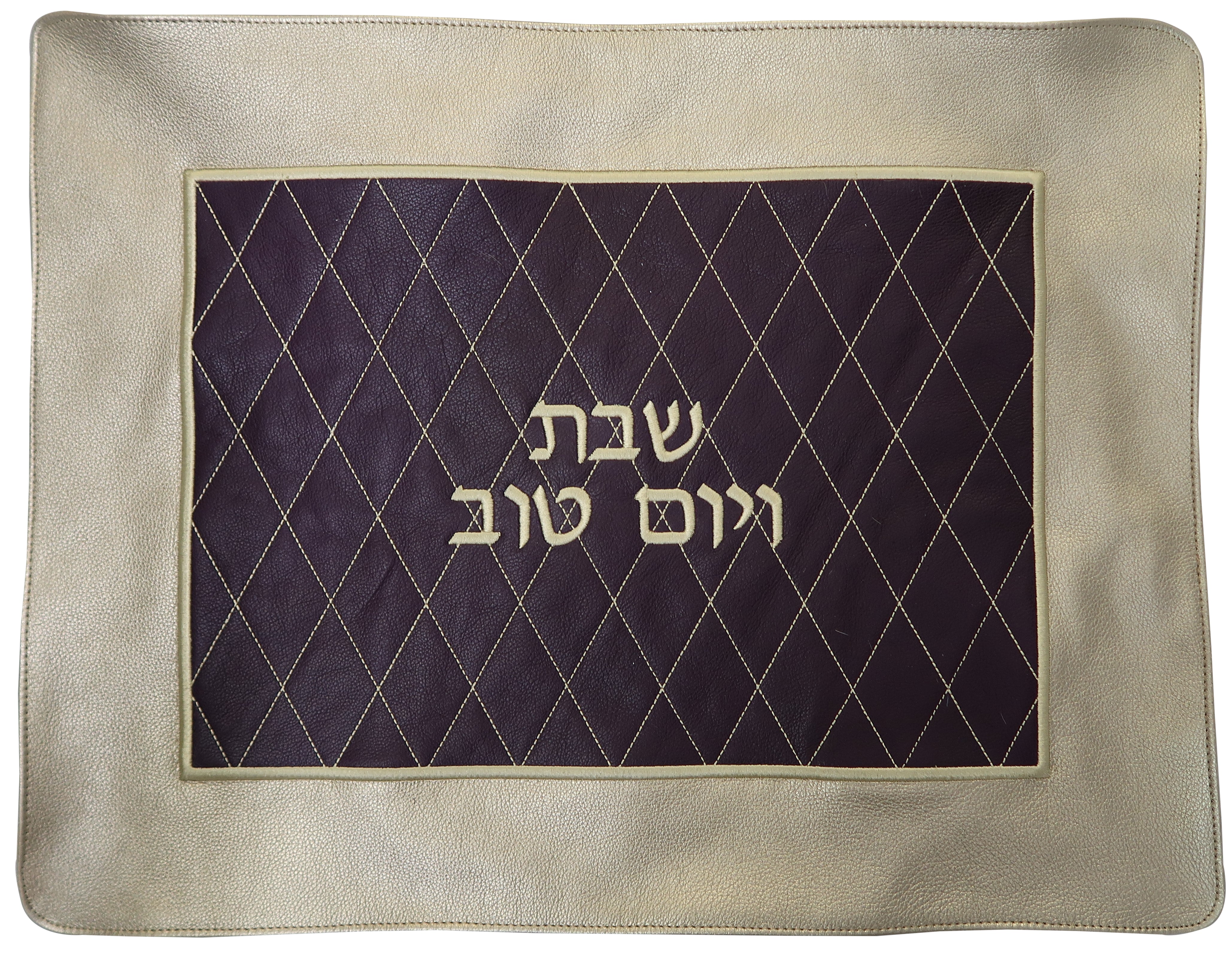 Embroidery diamond Challah cover with gold leather frame
