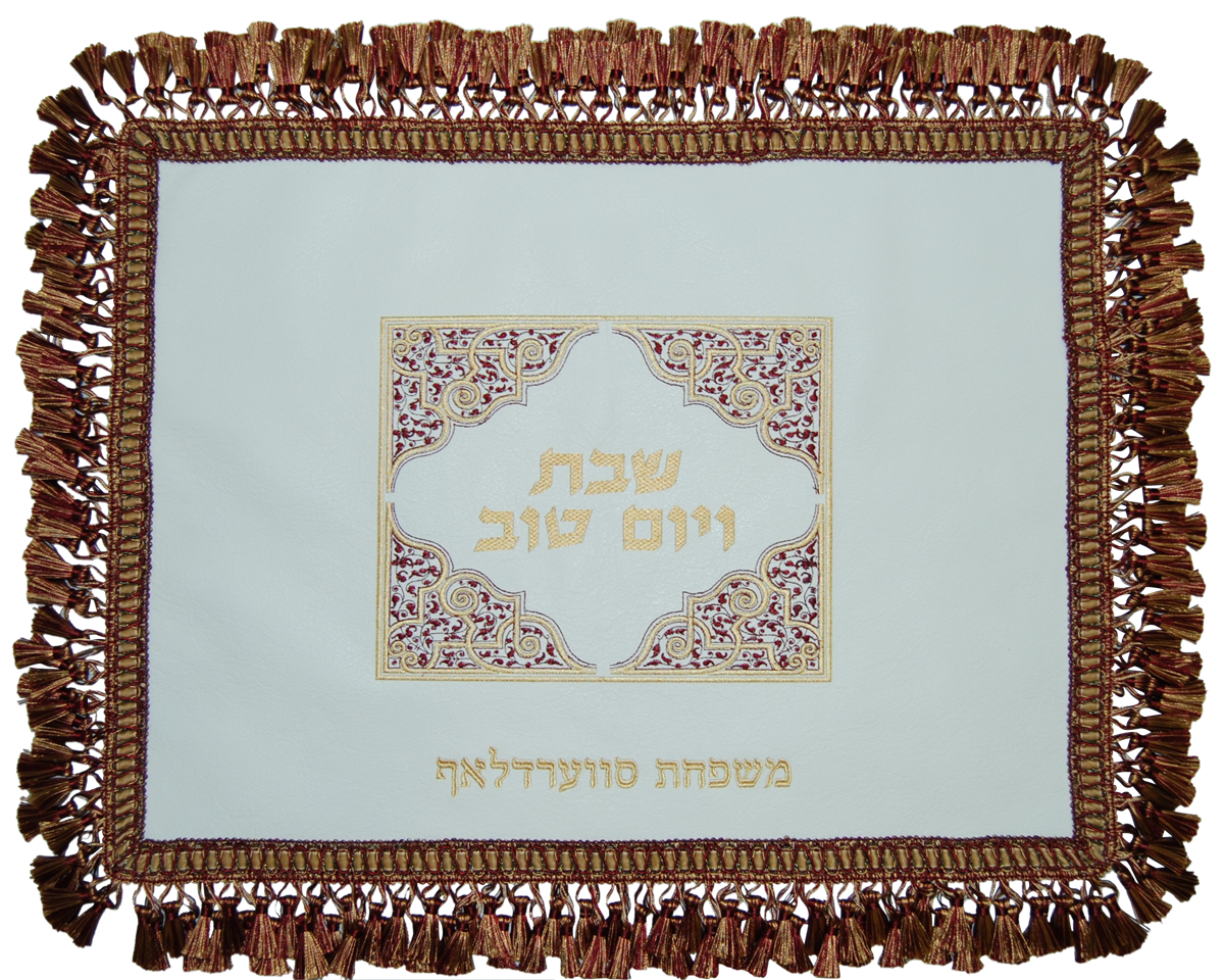 Leather Challah Cover with 2 Color Oriental Motif