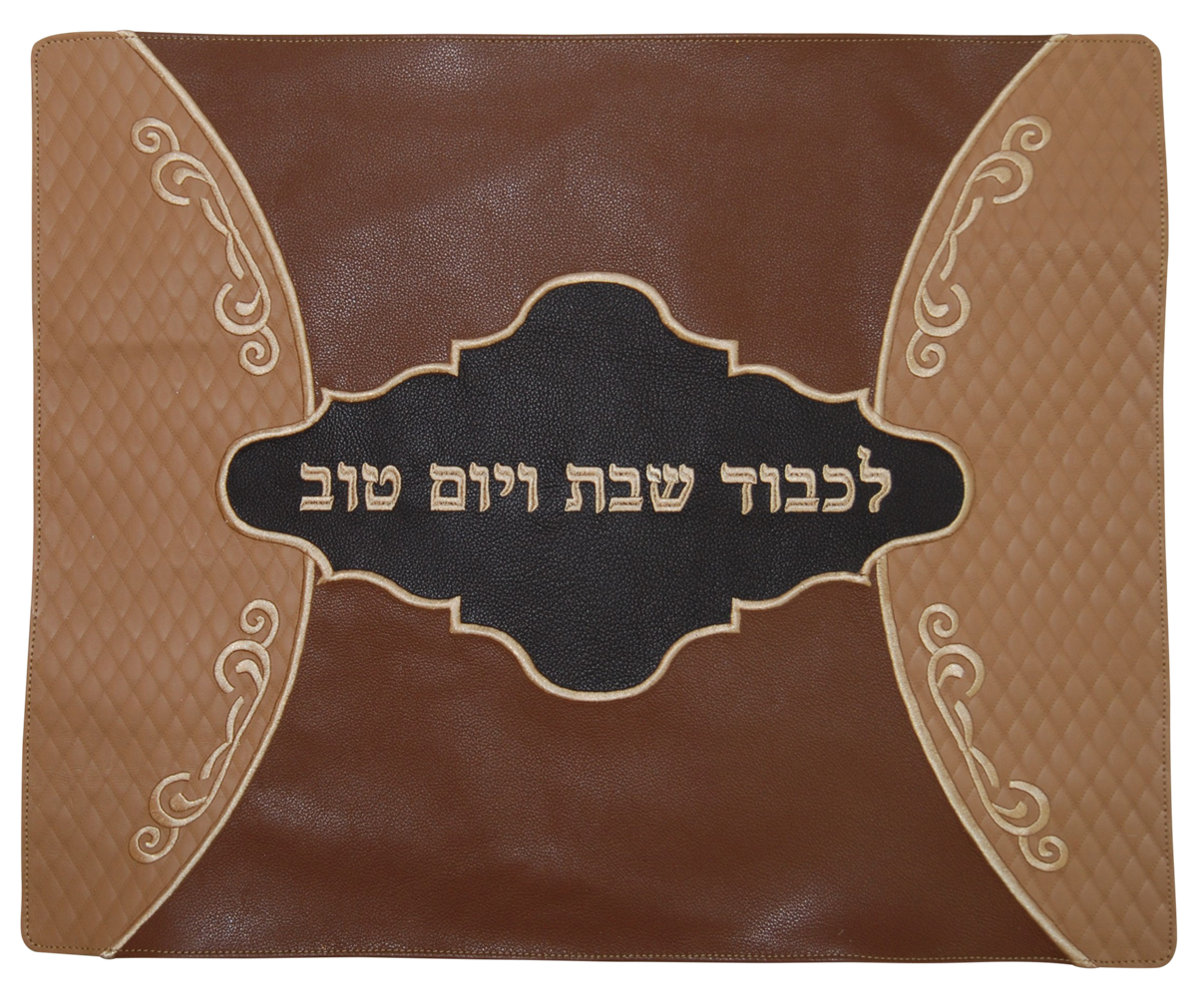Leather Challah Cover Hourglass with applique & Leather Combination
