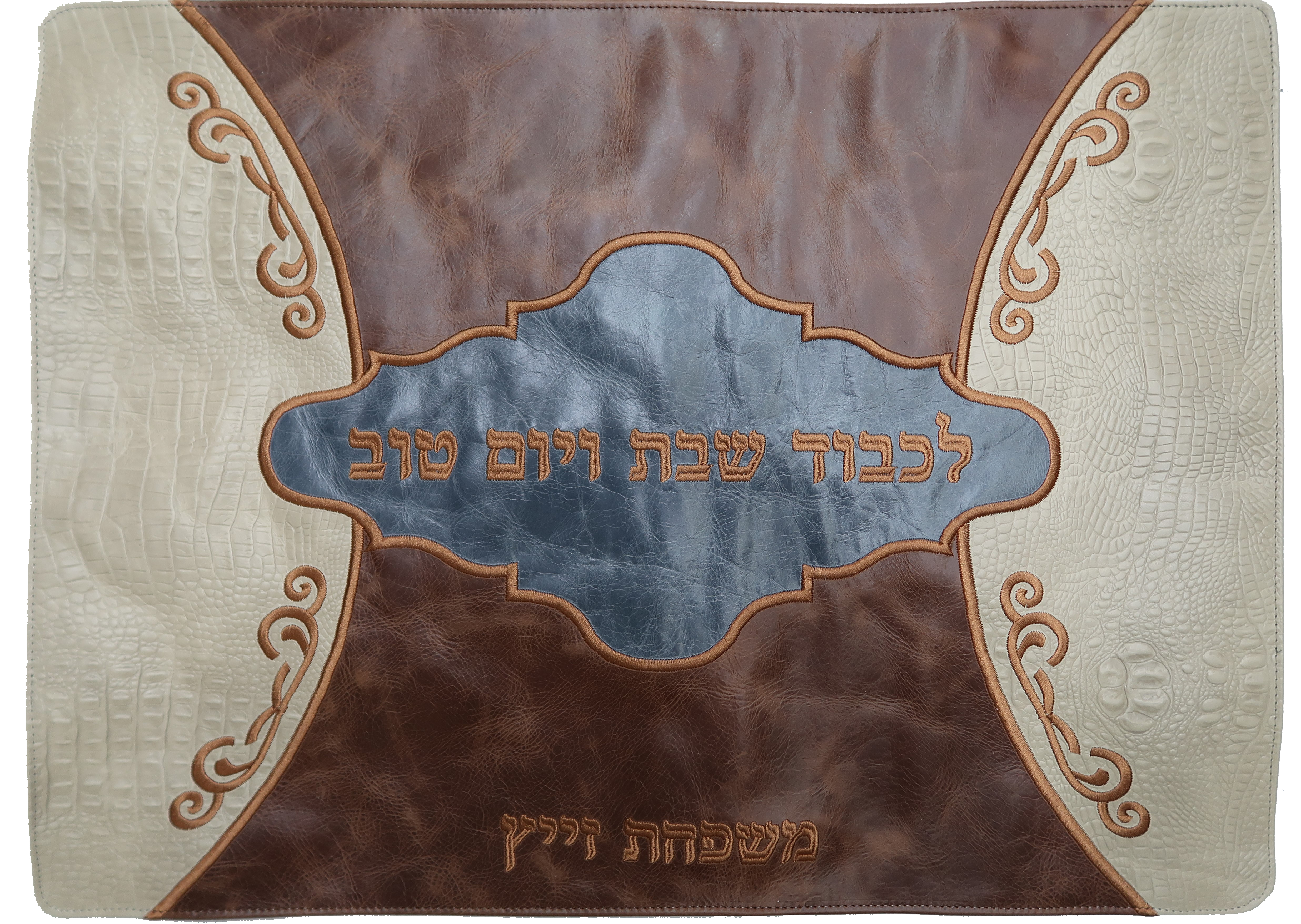 Leather Challah Cover Hourglass with applique & Leather Combination