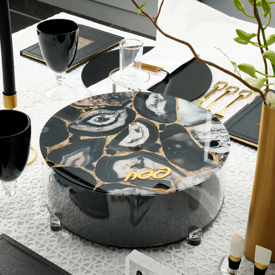 Enhance your Seder table with the exquisite Agate Matzah Box. Made from durable lucite, this box features a one-of-a-kind design with natural veining and rich colors, bringing an elegant and sophisticated element to your Pesach. The Agate Matzah Box not only offers durable storage for your Matzah, but it also adds a touch of beauty and refinement to your table setting. Ideal gift for your hostess.