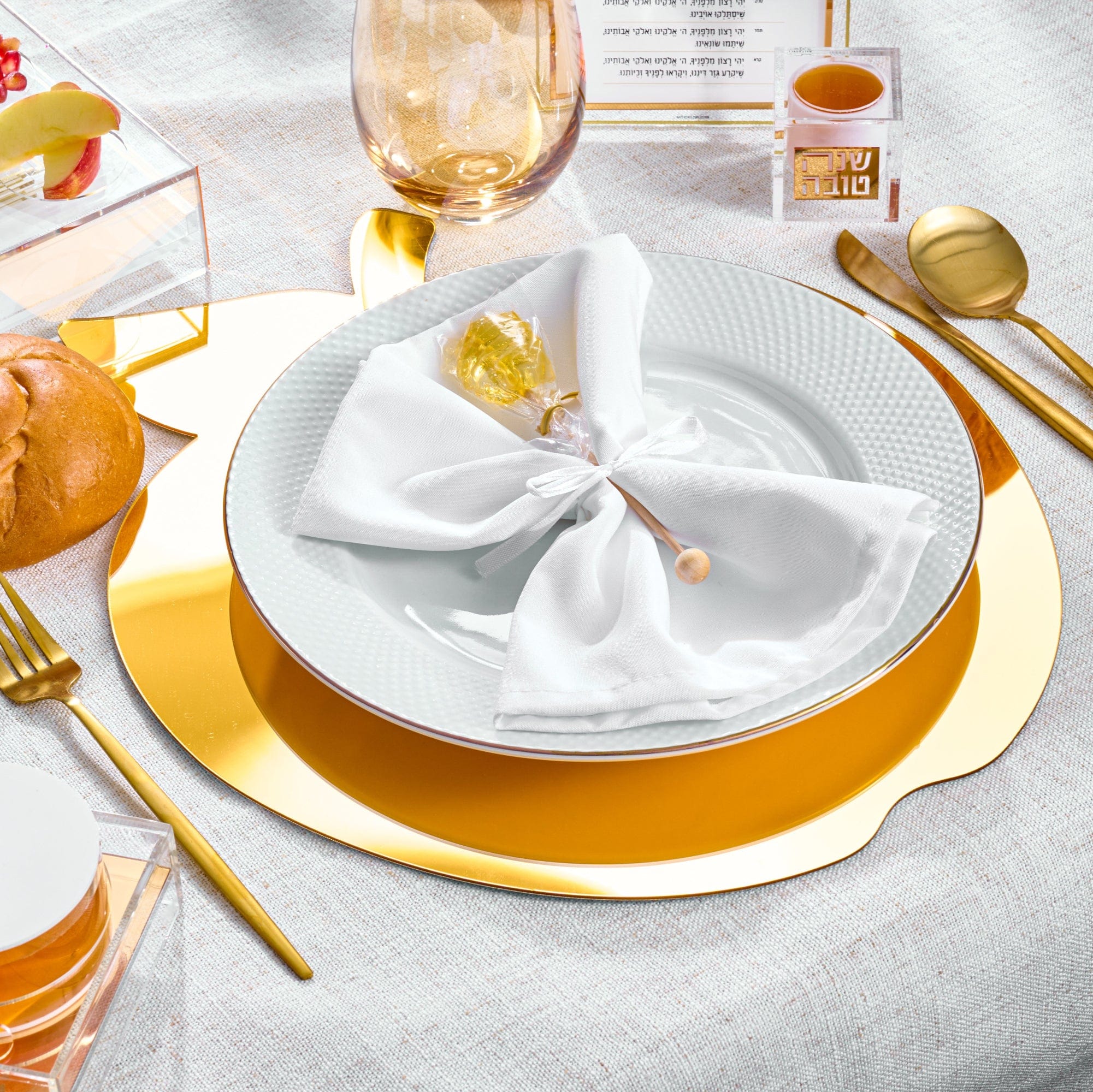 These magnificent Lucite Chargers feature mirrored lucite in a classic apple shape. Bring on the apple with an elegant twist! Fresh & classy, these can be styled in many different ways. Use as a charger, platter, or tray. The perfect addition to your Rosh Hashanah tablescape!