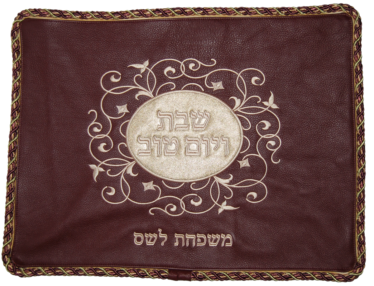Leather Challah Cover Circular design with a contrasting Leather patch