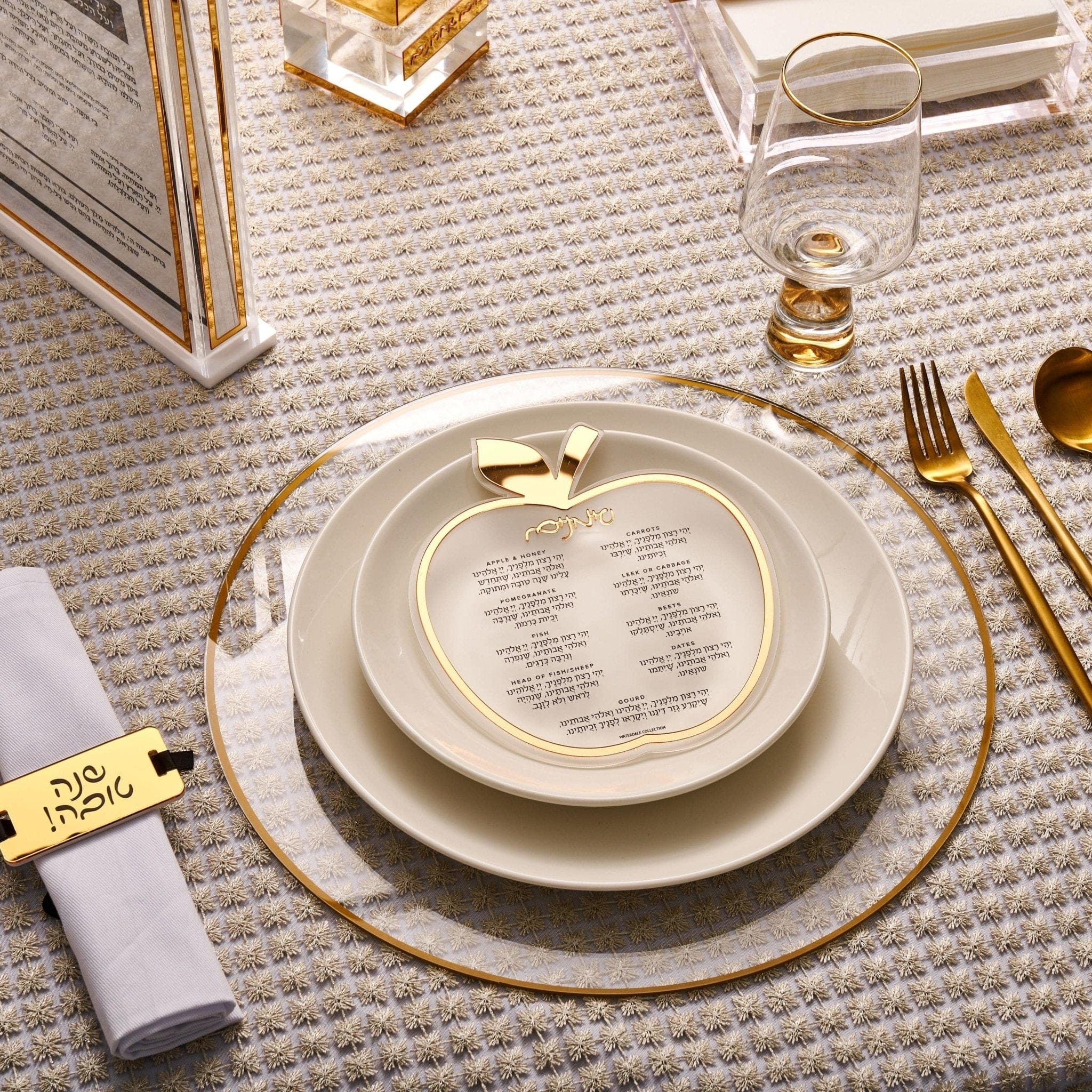 This stunning Classic Apple Simanim Card is the perfect and practical addition to your Rosh Hashanah table! Set by each seat or use as a gorgeous centerpiece. Bring on the apple with an elegant twist. Wipe down, honey proof, and water proof.