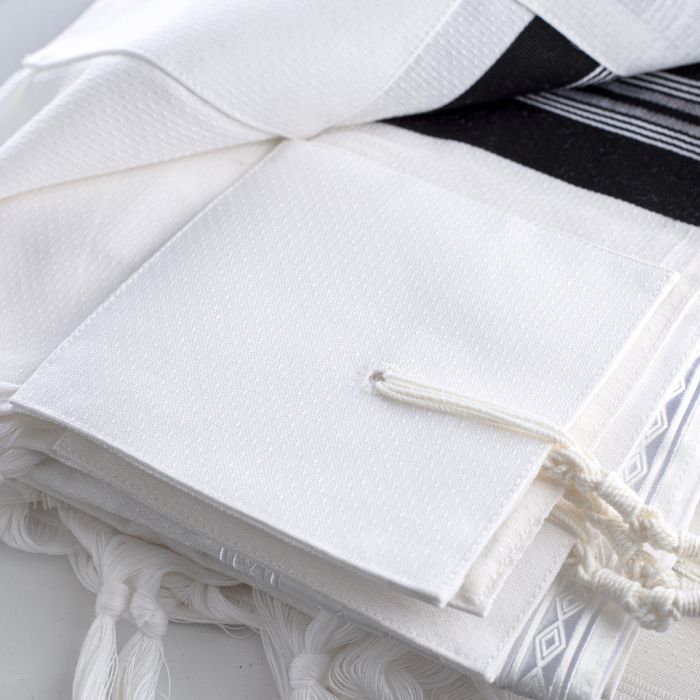 Woven from the finest wool, the Keter Tallis features jet black stripes that won't separate from the white begged, corners made from the same wool fabric as the begged, a special non-slip texture and superior stain protection. A state-of-the-art stitching technique ensures that the white stitching never overruns the black stripes.