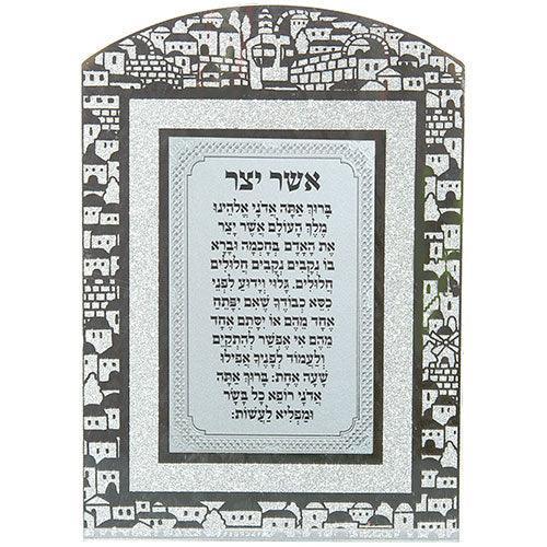 [[ מסגרת מראה עם נצנצים מזכוכית עיצוב "ירושלים" אשר יצר נוסח אשכנזי 24X17 ס"מ